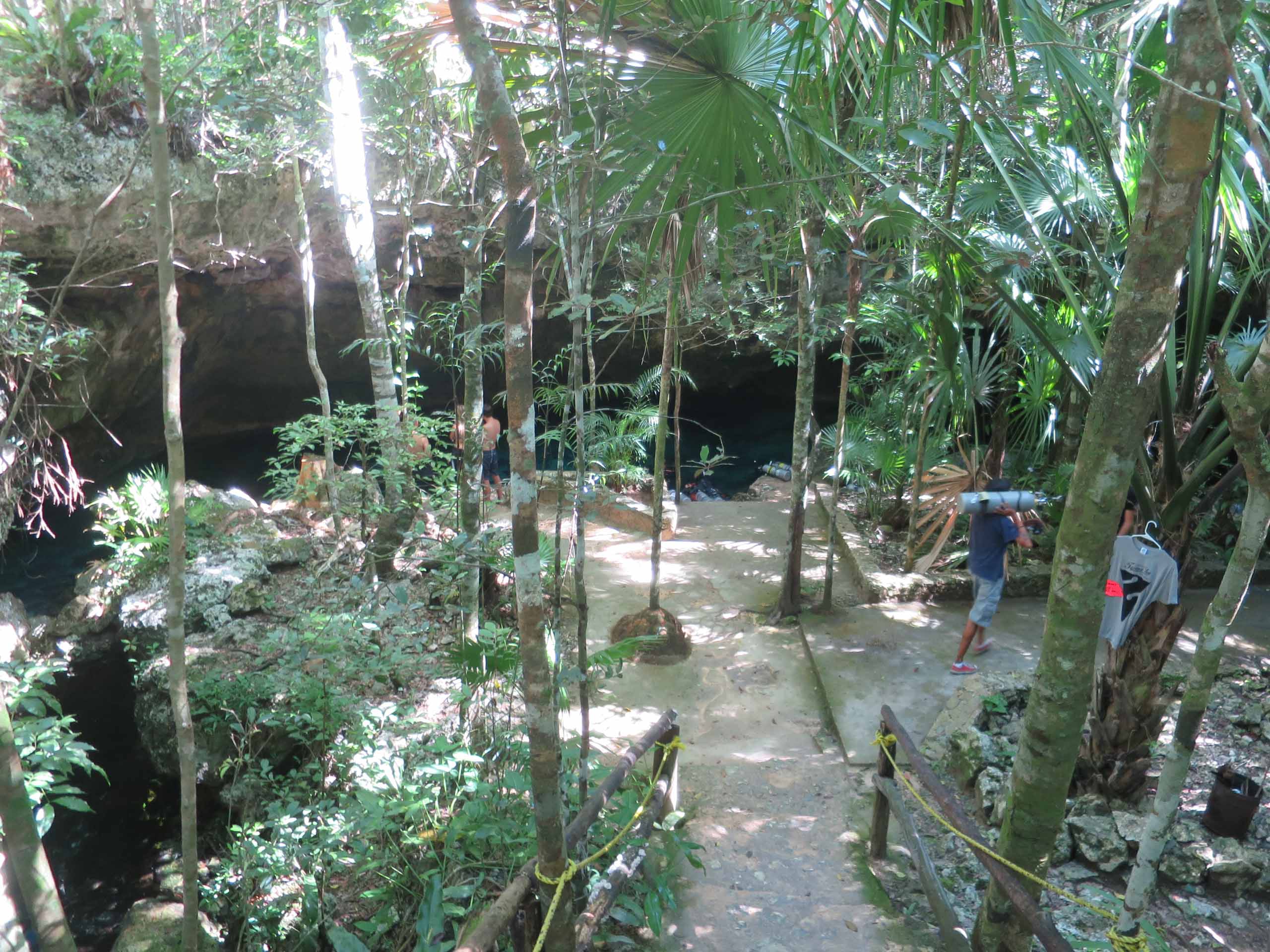 Igual que en el cenote Tjma Ha, el acceso al cenote Dos Ojos es muy sencillo. La mecánica es también la misma, llegar muy cerca con el coche, llevar el equipo hasta la entrada del cenote, explicación de las inmersiones con el mapa, equiparse, ¡y al agua!